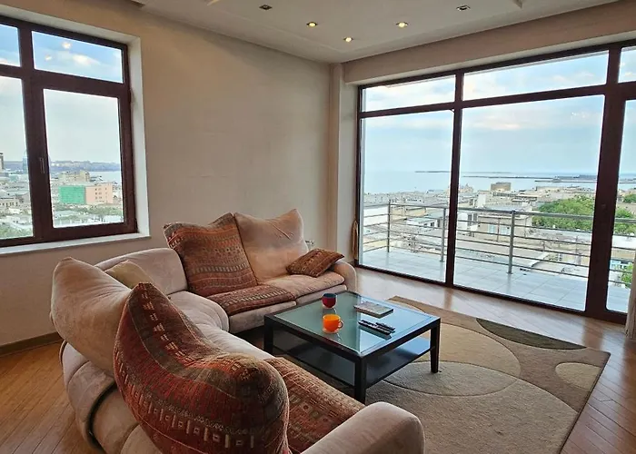 Haydar Aliyev havaalanına arabayla 25 dakika uzaklıkta bulunan Apartment With Sea View dairesi, Fevvareler Meydani'dan 5 dakikalık yürüme mesafesindedir. Daire, İçerişehir'a yürüyerek 8 dakika uzaklıkta ve İsmailiye Sarayı'a erişim sunmaktadır. Japanse yemekleri, tesise yaklaşık 300 metre mesafedeki suşi bar Bake&Roll Sushi Bar'da servis edilmektedir. Taze Pir Camii yakınlardadır.